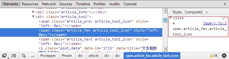 查看元素盒模型:盒模型对于表现的分析还是挺重要的,而且能看position的各个参数(如果设置了的话)