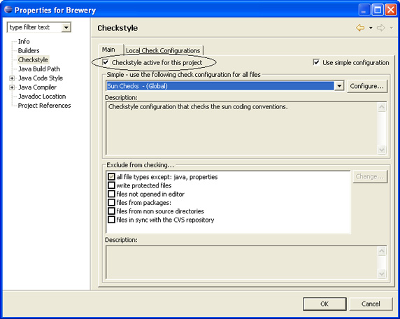 2、选择 CheckStyle active for this project 复选框,单击 OK。