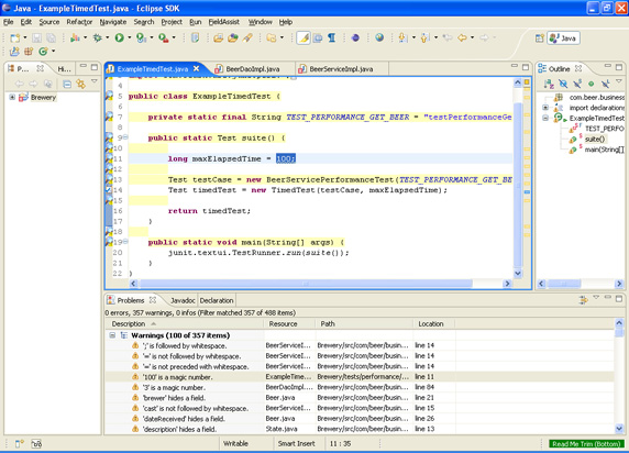 使用 Eclipse 的 CheckStyle 插件的好处是能够在编码过程中了解到源代码上下文的各种编码冲突,让开发人员更可能在签入该代码前真正处理好这些冲突。您也几乎可以把 CheckStyle 插件视作一个连续的代码复查工具!