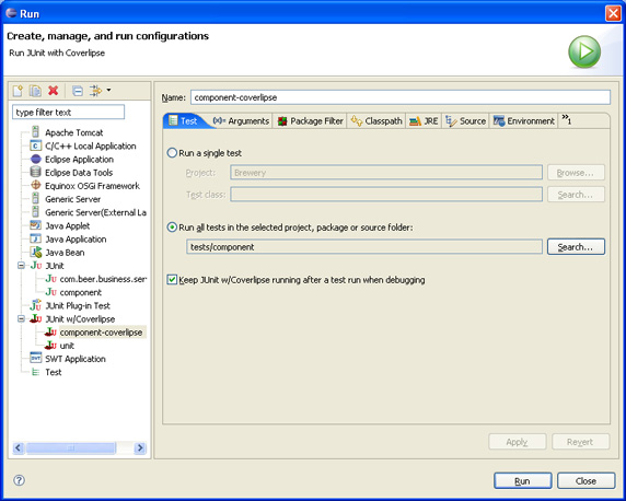 图 6. 配置 Coverlipse 以获取代码覆盖率