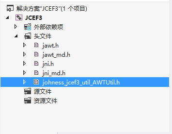 具体包括jawt.h、jawt_md.h、jawt.lib(另外jni.h以及jni_md.h是使用jni必须的)