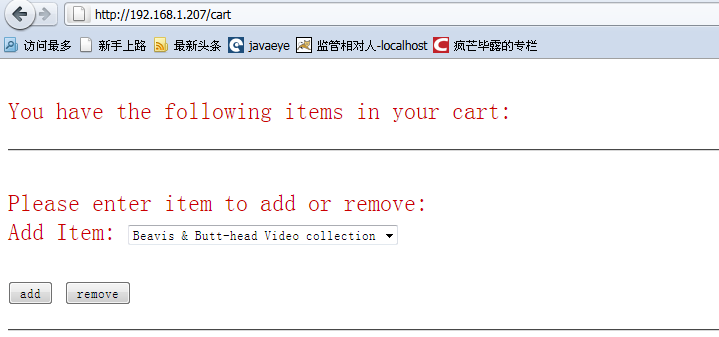 打开浏览器输入:http://192.168.1.207/cart,显示映射成功: