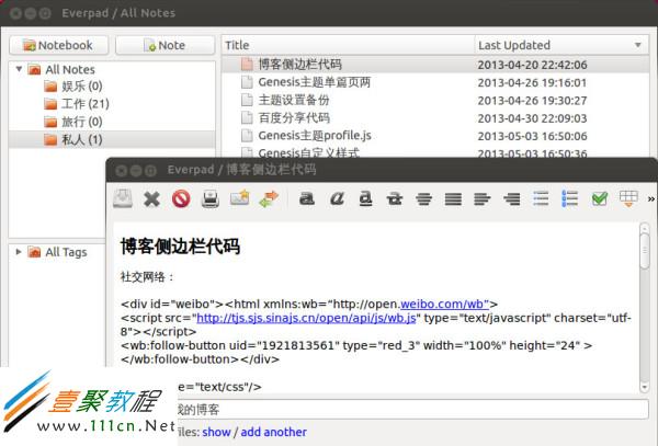 至此,就可以很方便的在 Ubuntu 上使用 Evernote 了。