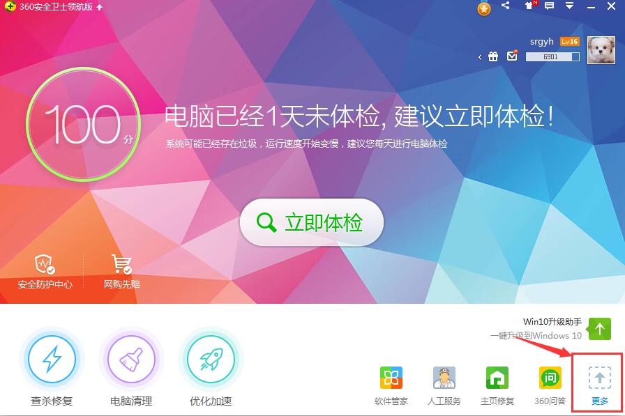 打开360安全卫士,点击右下角的“更多”打开工具界面