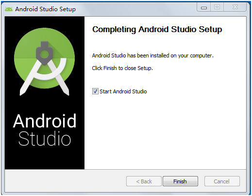 这里Android studio程序安装完毕,但是还需要继续对其进行配置;勾选Start Android Studio,然后点击finish启动AS,出现下图