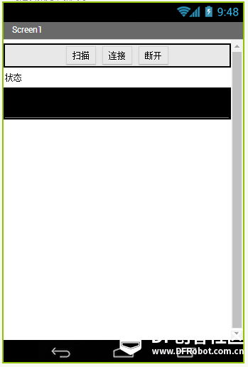 我们希望设置应用程序来扫描可用的蓝牙设备。为此,我们将使用ButtonScan按钮设置蓝牙组件以开始扫描,并更改状态标签。